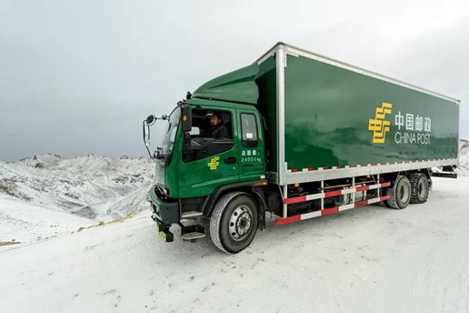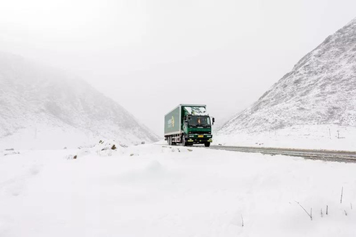 其美多吉駕車行駛在雪線郵路上