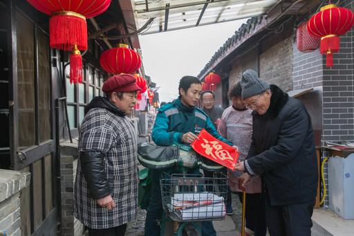 “老爹,先向您拜個早年呀,我把對聯和‘福’字都帶來了,貼在哪里您告訴我!”2月4日,江蘇省如皋市郵政分公司城區投遞部投遞員陳志勇對季保余老人說。每年大年三十,陳志勇都會在老街投遞的同時,給巷子里的街坊鄰居送“福”貼“福”,這是他堅持了14年的習慣。“投遞員,巷子,綠制服、紅燈籠,每年大年三十有了這些,我才覺得真是過年了!”接過“福”字的季保余說。 □劉稷 徐慧 攝影報道