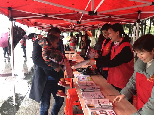 日前,浙江省義烏市郵政分公司12名黨員冒雨到市民廣場開展“公益廣角”志愿服務(wù)活動,為市民送上溫暖。