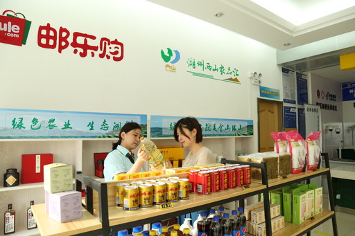湖州是“綠水青山就是金山銀山”這一“兩山”理念的發(fā)源地,湖州市人民政府以“兩山”理念為核心,打造“兩山”農(nóng)品區(qū)域品牌,由供銷(xiāo)社負(fù)責(zé)運(yùn)營(yíng)。湖州市分公司充分對(duì)接,為其提供金融、寄遞、宣傳等服務(wù)。同時(shí),與供銷(xiāo)社聯(lián)合運(yùn)營(yíng)“郵樂(lè)小鎮(zhèn)”項(xiàng)目、開(kāi)通郵樂(lè)網(wǎng)湖州兩山農(nóng)品館。目前,兩山農(nóng)品館已上架農(nóng)產(chǎn)品30余種,成交近3000單,累計(jì)實(shí)現(xiàn)業(yè)務(wù)收入30余萬(wàn)元。圖為兩山農(nóng)品館工作人員向客戶(hù)介紹特色產(chǎn)品。 □黃悅 攝影報(bào)道