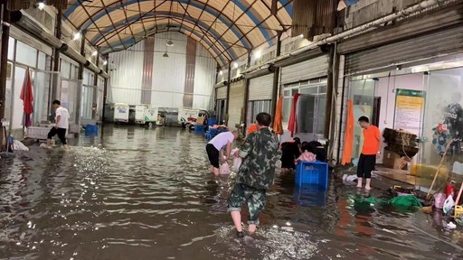 山東濟(jì)南:濟(jì)南市郵政寄遞事業(yè)部歷城區(qū)工業(yè)北路營業(yè)部受災(zāi)嚴(yán)重,員工及時轉(zhuǎn)移郵件及物資。李小樂 攝