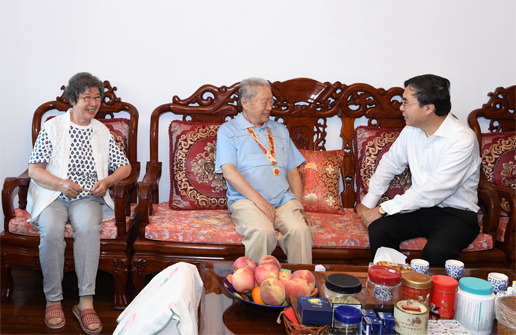在慶祝新中國成立70周年之際,按照中央有關要求,9月20日,集團公司黨組書記、董事長劉愛力來到總部機關離休干部張顯明家中走訪慰問,莊重地為他戴上由中共中央、國務院、中央軍委頒發的慶祝中華人民共和國成立70周年紀念章,轉達習近平總書記和以習近平總書記為核心的黨中央、國務院對為建立新中國作出特殊貢獻的老同志的關心和慰問。