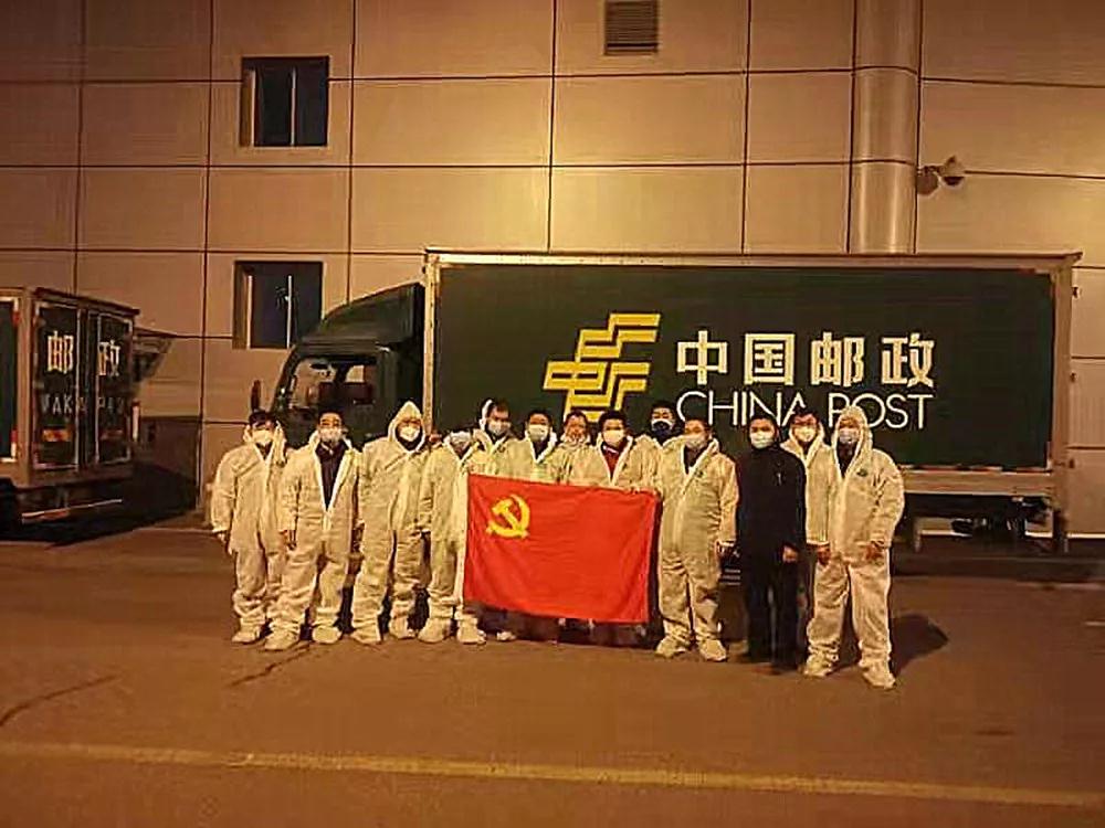 上午9時,一切就緒后,24名郵政突擊隊員迅速投入了轉(zhuǎn)運物資的戰(zhàn)斗。突擊隊員們分工明確,秩序井然,有的運送辦公用品,有的運送防控物資,有的運送生活用品。裝車、運輸、卸車,在緊張而有序的忙碌中,一切節(jié)點都按分鐘來計算,隊員們不敢有片刻懈怠。從常福新城總庫到火神山醫(yī)院的6公里道路上,9臺郵車不停地來回穿梭,暢通無阻。突擊隊員們深知搶運這批物資的重大責任和特殊意義,不知苦,不畏難,只想為抗擊疫情多貢獻一份力量。