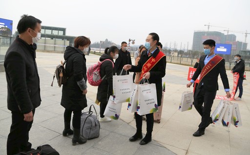 2月20日,“畢海同心、雙戰(zhàn)雙贏”貴州畢節(jié)至浙江海寧務(wù)工人員返程專列歡送儀式在畢節(jié)市舉行。郵儲銀行畢節(jié)市分行、畢節(jié)市人力資源和社會保障局、畢節(jié)市郵政分公司聯(lián)手為每一位務(wù)工人員準(zhǔn)備了一份含口罩、方便面、八寶粥等物資的防疫“郵愛禮包”,共計(jì)600余個。