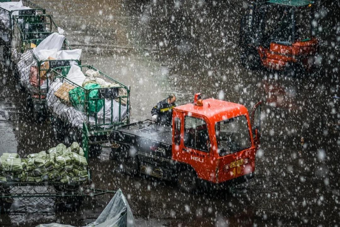 2020年2月14日上午,在位于北京站的北京郵區(qū)中心局,負(fù)責(zé)接發(fā)郵件的轉(zhuǎn)運分揀員們正在風(fēng)雪中緊張地轉(zhuǎn)運處理封發(fā)郵件,以確保郵政通信暢通。雖在疫情當(dāng)下又遇連續(xù)兩日的降雪天氣,但為了讓捐贈物資快速寄達武漢,北京郵區(qū)中心局在分揀環(huán)節(jié)對防疫物資實施“三專”“五優(yōu)”工作機制,即專人接收、專人處理、專人發(fā)運,優(yōu)先收寄、優(yōu)先接收、優(yōu)先處理、優(yōu)先運輸、優(yōu)先投遞,并開通兩個郵件接收垛口作為綠色通道,捐贈物資實行全程單獨處理,內(nèi)部處理環(huán)節(jié)提速兩個多小時。
