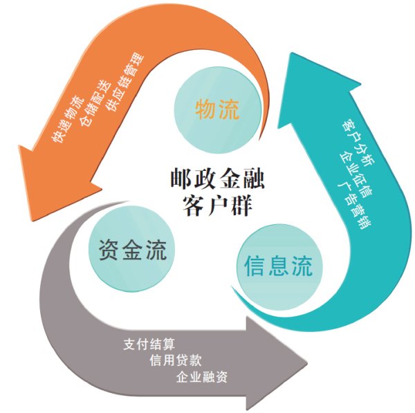 對銀行業(yè)來說,實(shí)體網(wǎng)點(diǎn)多不一定是好事,但對于重視線下服務(wù)運(yùn)營能力的快遞物流業(yè)來說,“點(diǎn)多線長”一定是巨大的優(yōu)勢。物流不僅僅是節(jié)點(diǎn),還有聯(lián)結(jié)上游和下游的功能,是能夠?qū)⒔鹑诜?wù)融入的絕佳場景。中國郵政作為“三流合一”的典型代表企業(yè),其多業(yè)態(tài)并存、混業(yè)經(jīng)營的優(yōu)勢,已經(jīng)形成了獨(dú)具特色的價(jià)值網(wǎng)絡(luò)。從物流、商品流到企業(yè)的資金流、信息流,再延伸至銀行支付、融資等核心業(yè)務(wù)領(lǐng)域,恰恰是郵政能夠抓住的機(jī)遇所在??梢哉f,在商貿(mào)流通領(lǐng)域中郵政擁有獨(dú)特的行業(yè)優(yōu)勢。