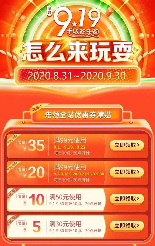 燃爆9月!郵政919豐收歡樂(lè)購(gòu)讓你連嗨1個(gè)月!