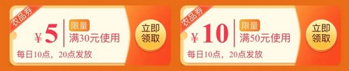 可領(lǐng)取50減10及30減5專場(chǎng)優(yōu)惠券