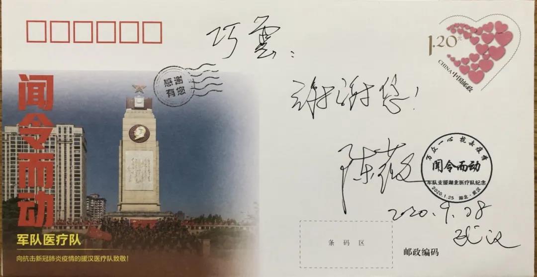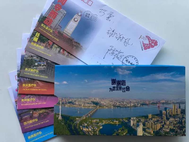 疫情期間,武漢市分公司為表達(dá)武漢人民對不計(jì)報(bào)酬、不論生死的援漢醫(yī)療隊(duì)感恩、感謝、感激之情,以31支援漢醫(yī)療隊(duì)為主題,融合武漢人文風(fēng)光和特色地標(biāo)元素,與人民日報(bào)社新媒體中心聯(lián)合開發(fā)了這套《感恩有你》抗疫紀(jì)念郵資封。用郵政特有的“文化符號(hào)”致敬仁心、感恩大愛,銘記為武漢拼過命的人們。9月24日,在挑選送給108位勇士的禮物時(shí),從軍29載的陳薇院士經(jīng)過反復(fù)斟酌和比較,在武漢市分公司推薦的多款抗疫郵品中,最后敲定了這套含有軍隊(duì)醫(yī)療隊(duì)紀(jì)念封的郵品。