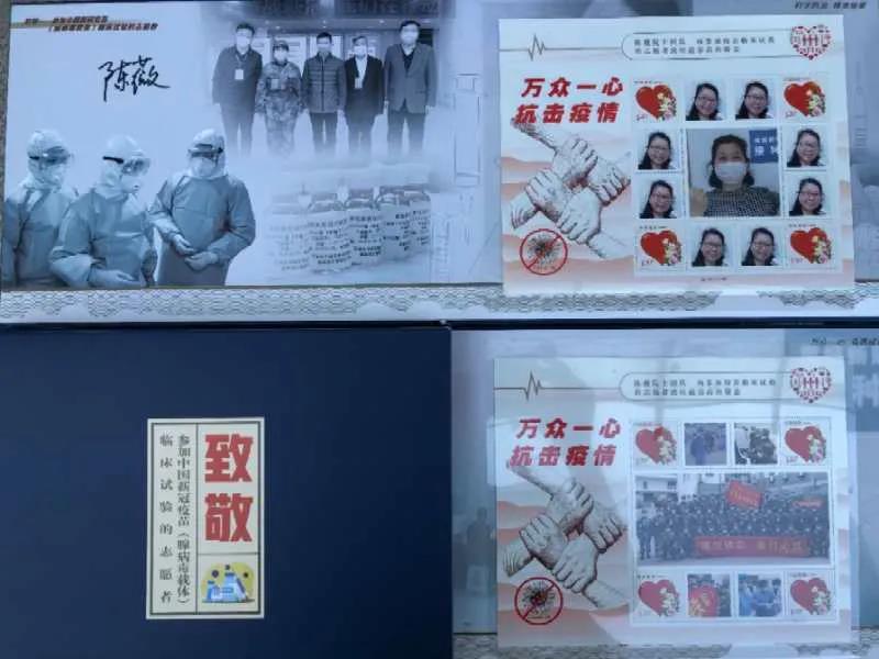 在陳薇院士和團(tuán)隊(duì)成員張振威主任、邵龍飛教授以及郵政工作人員的共同努力下,武漢市分公司先后為參加重組新冠疫苗I期、Ⅱ期臨床試驗(yàn)的志愿者設(shè)計(jì)制作了2000套紀(jì)念品,均在第一時(shí)間送往陳薇團(tuán)隊(duì)駐地,讓這份心意能最快地到達(dá)志愿者手中,傳遞到他們心里。