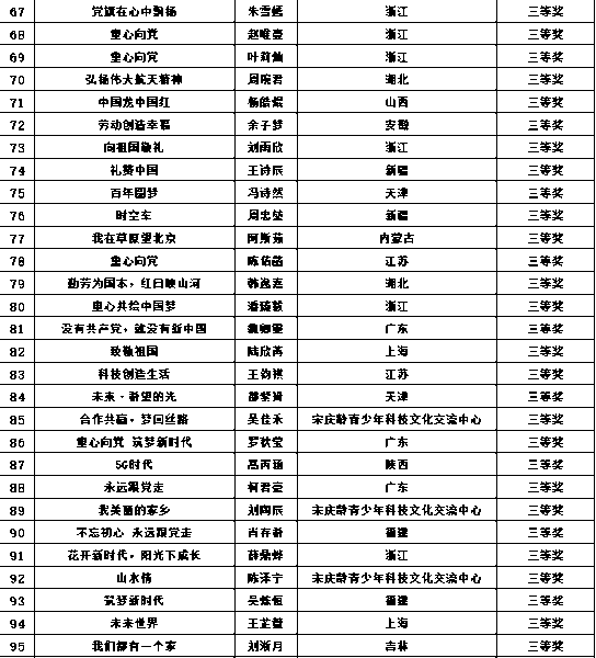 由中華全國集郵聯(lián)合會(huì)、中國郵政集團(tuán)有限公司、中國宋慶齡基金會(huì)共同主辦的“永遠(yuǎn)跟黨走 逐夢新時(shí)代”全國少年兒童郵票創(chuàng)作設(shè)計(jì)作品征集活動(dòng)圓滿結(jié)束。獲獎(jiǎng)作品名單已于2021年3月29日至2021年4月4日在主辦單位官網(wǎng)進(jìn)行了公示,未收到申訴與舉報(bào)。現(xiàn)將獲獎(jiǎng)名單予以公布。