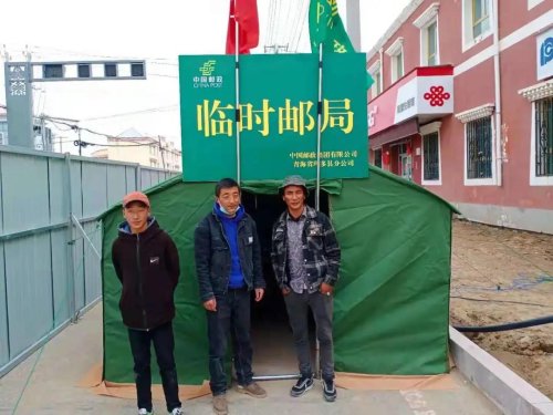 積極開展生產(chǎn)自救,保證郵政、金融服務(wù)不中斷,云南漾濞、青海瑪多兩地郵政人搭建“帳篷郵局”,滿足當(dāng)?shù)匕傩沼绵]需求。