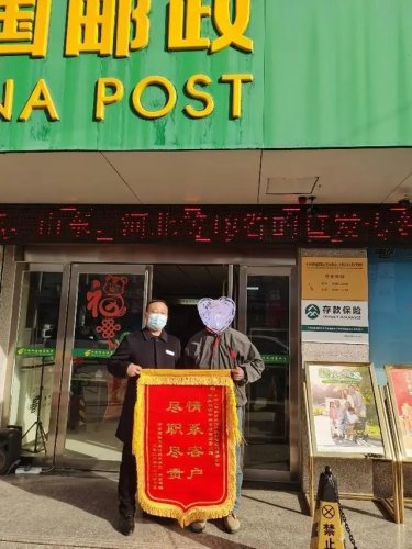 近日,駐馬店市平輿縣萬金店郵政營業(yè)所收到客戶的一面錦旗,上寫著“情系客戶 盡職盡責”,客戶激動地拉著理財經理的手說:“感謝咱們郵政,感謝中郵保險啊。”