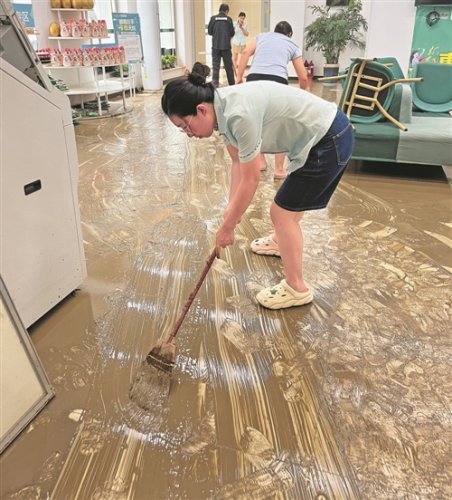 8月4日,涿州郵政范陽路營業所全體員工到崗,合力清理網點淤泥,當天上午網點恢復營業?!鯊堄蠲?攝