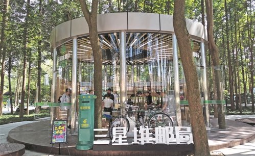 7月28日,位于四川省廣漢市的三星堆郵局開業(yè)試運(yùn)行。三星堆郵局坐落于蒼翠的樟木林中,采用通透的圓形玻璃房設(shè)計(jì),將“郵政綠”與“青銅綠”巧妙融合,與鄰近的三星堆博物館新館相映成趣。