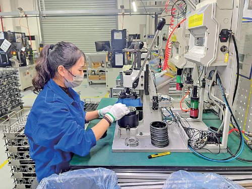 常州郵政員工在賀爾碧格車間裝配同步器?! 醪槿~娟 攝