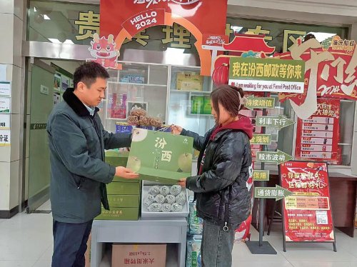 “玉露香梨皮薄、多汁,又新鮮又好吃。晚上下單,次日就能收到,非常方便!”樊女士是汾西縣廣場郵政支局的金融客戶,今年春節(jié)前,她通過支局訂購了十幾箱玉露香梨送給各地的親朋好友。