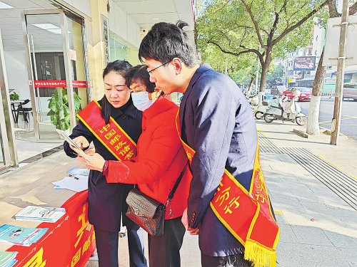 郵儲(chǔ)銀行江西省贛州市分行工作人員向廣大居民講解電信詐騙防范、非法金融活動(dòng)對(duì)社會(huì)的危害等知識(shí),提醒社會(huì)公眾增強(qiáng)辨別能力和防騙意識(shí),堅(jiān)決抵制“高額回報(bào)”的誘惑。 □楊蘭 攝
