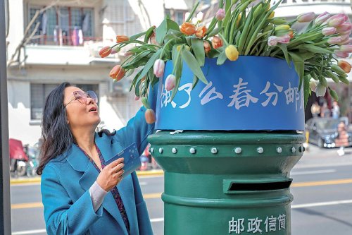 春分節氣,上海市郵政分公司武康大樓郵政所披上新裝,搖身一變成為“餓了么春分郵局”。在這里,上海郵政跨界聯動餓了么平臺組織發起了“上海春日”明信片寄遞活動。3月20日至21日,感興趣的朋友前往“春分郵局”免費領取限量版“上海春日”明信片和花卉主題郵票,投入由綠色郵筒打造成的“郁金香花筒”即可寄給親友。