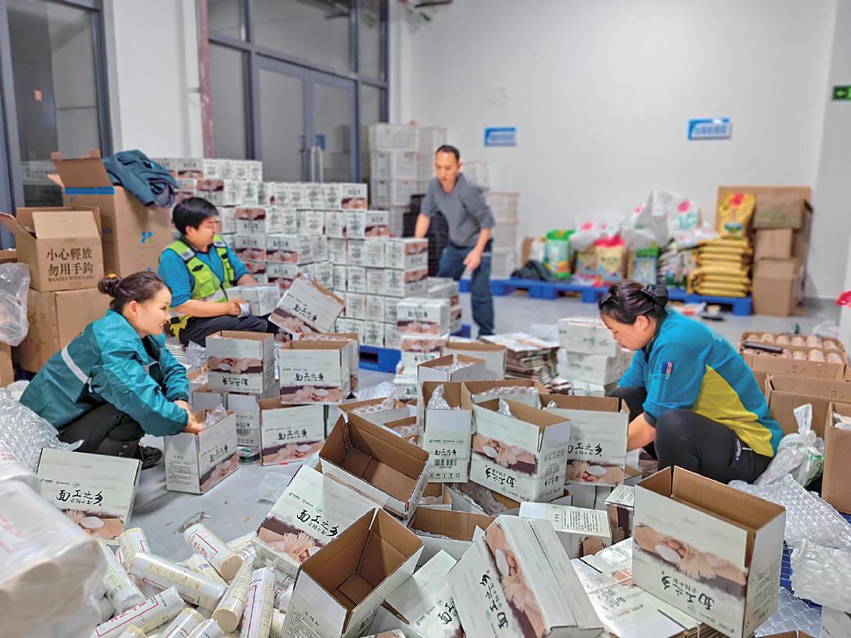 3月28日晚,云陽(yáng)縣郵政分公司結(jié)束直播后,郵政員工加班加點(diǎn)打包云陽(yáng)小面。