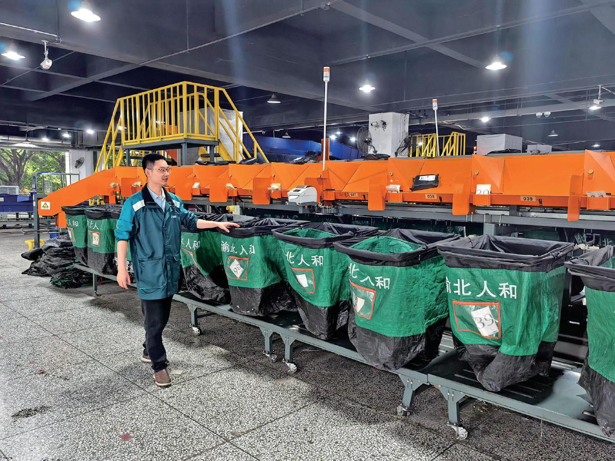渝北區(qū)人和攬投部內(nèi),工作人員依次檢查郵件落格情況。□鄔寅嘯 攝