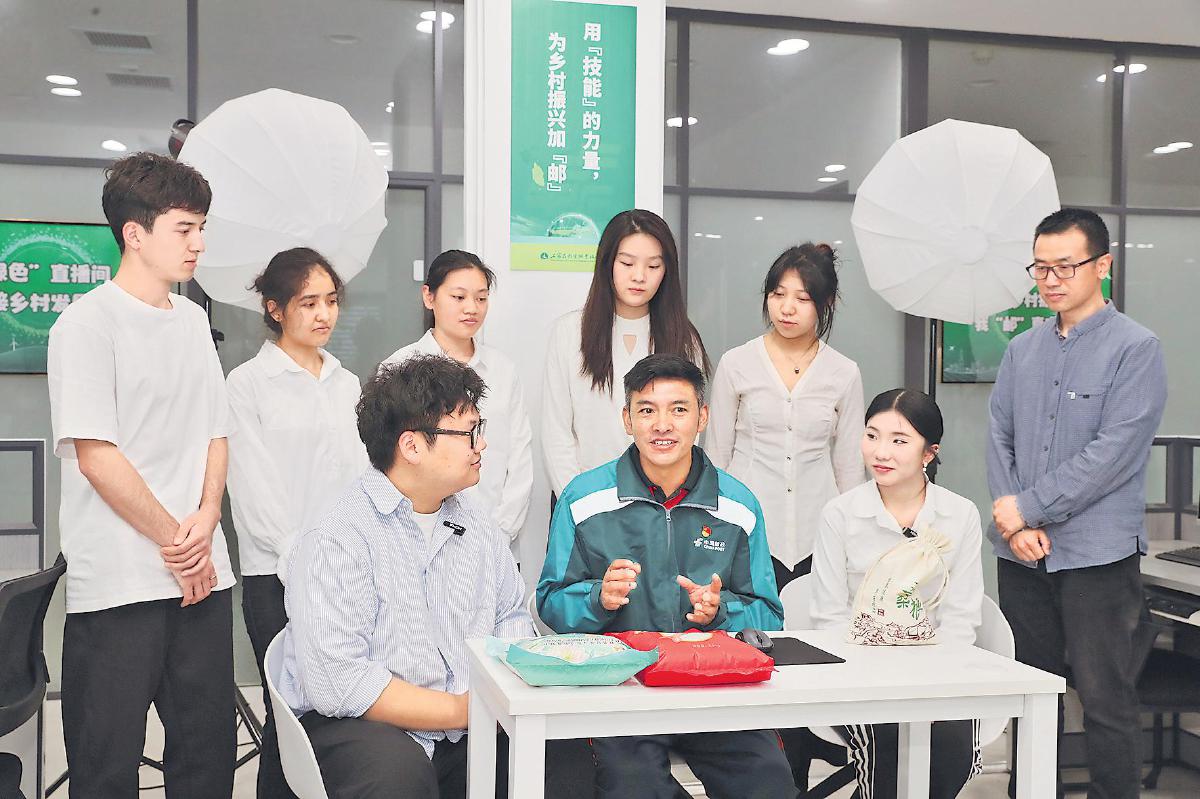 哈弄奪機為學生講授直播帶貨話術技巧。 □王建威 攝
