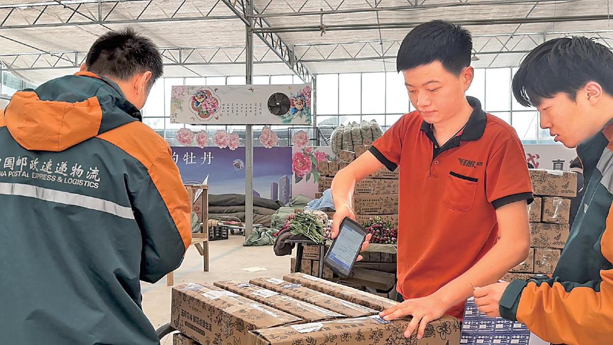 “我們在田間地頭設立臨時集散中心,攬收車輛將鮮切花及時盤駁至臨時場地,快速完成分揀,趕發相應的航空或冷鏈陸運郵路,通過優化作業模式,大幅提高了物流速度。”菏澤市牡丹區郵政分公司寄遞事業部的馮衍凱說。