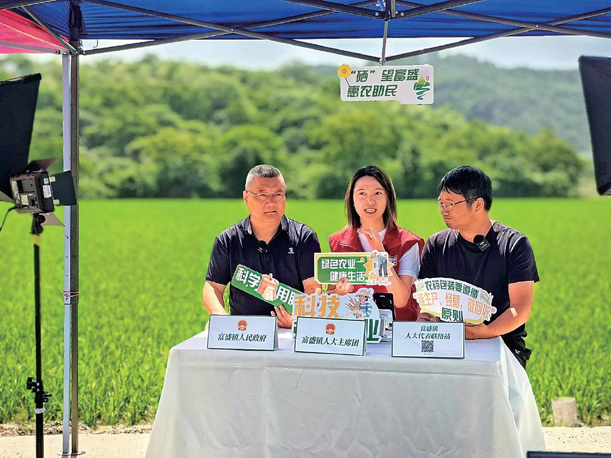 “大家看,我們身后的水稻田正是我們農場種植的。在我們農場,這樣的水稻田種植面積超2000畝,歡迎對水稻種植感興趣的觀眾來實地參觀學習。”近日,浙江省紹興市郵政分公司與富盛鎮(zhèn)政府聯(lián)合組織了一場特別的直播活動,邀請全國農業(yè)農村勞動模范、紹興市人大代表、富盛鎮(zhèn)新青馬農場的負責人唐海峰走進郵樂直播間,與紹興市分公司的金牌主播一起為觀眾作了有關農業(yè)知識以及解決農作問題的生動講解。整場直播活動共吸引觀眾4200人次,點贊破1.1萬次。