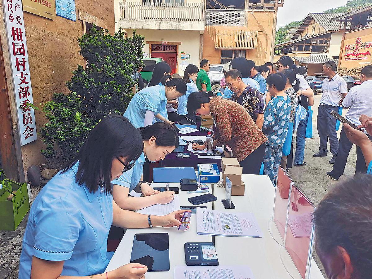 巫山郵政送普惠金融進村,為果農辦理金融業(yè)務。