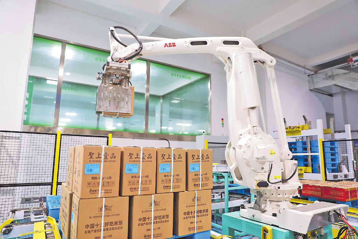 聽(tīng)說(shuō)郵儲(chǔ)銀行的人前來(lái)調(diào)研,本來(lái)臨時(shí)要出差的五常市金禾米業(yè)有限責(zé)任公司董事長(zhǎng)李云輝將出行時(shí)間硬是推遲1小時(shí),只為能見(jiàn)上一面。當(dāng)看到金禾米業(yè)生產(chǎn)線上兩臺(tái)“ABB”數(shù)控機(jī)器臂正在精準(zhǔn)分揀包裝好的盒裝高端稻米產(chǎn)品時(shí),記者不禁感嘆:“普通的大米居然能做得如此高科技!”