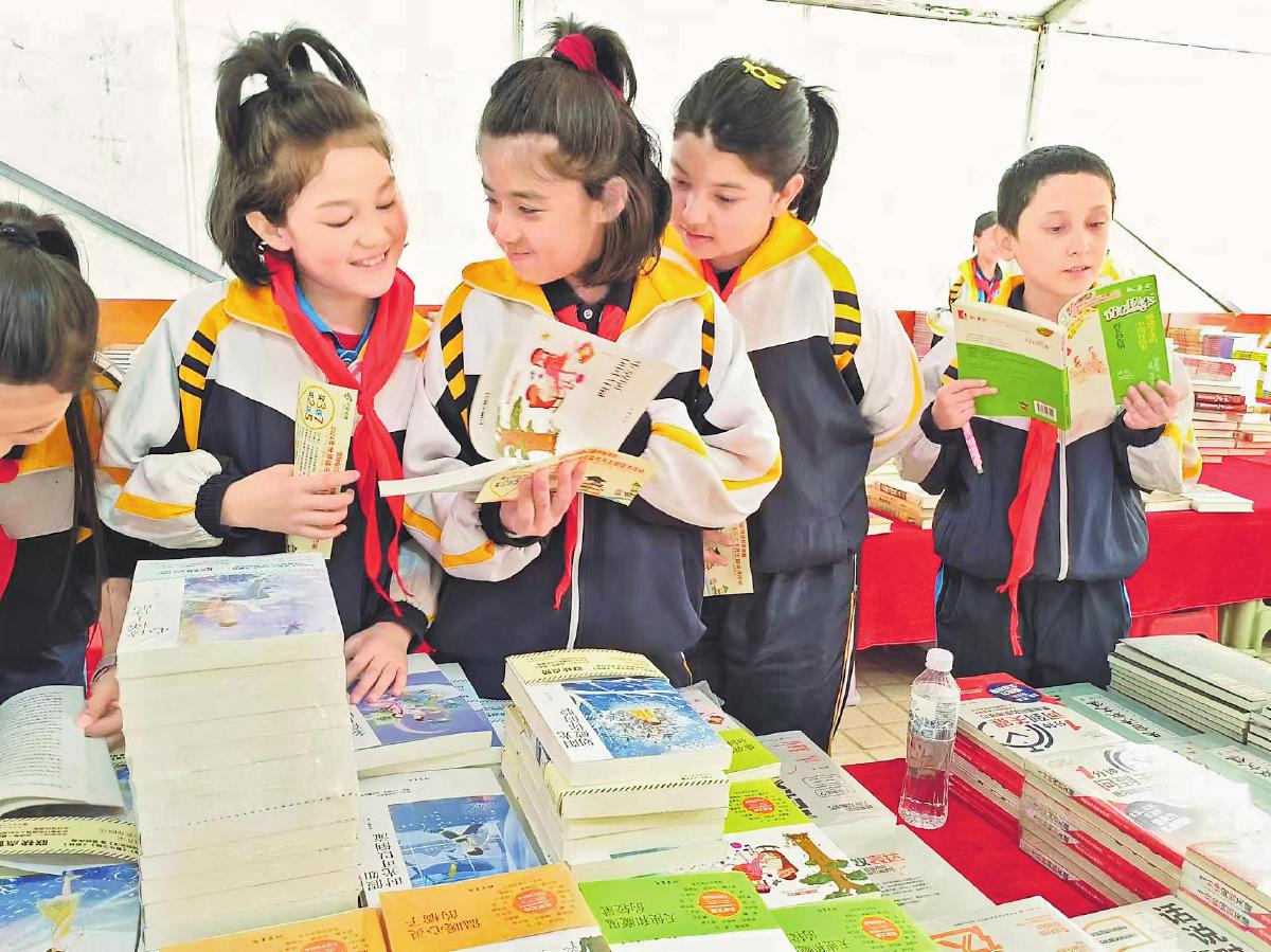 近日,由新疆維吾爾自治區(qū)喀什市委宣傳部、市教育局牽頭,喀什地區(qū)郵政分公司承辦的“閱讀新時(shí)代·喀什向未來(lái)”圖書贈(zèng)閱惠民活動(dòng)啟動(dòng)儀式在喀什市第十一小學(xué)舉行??κ驳貐^(qū)分公司捐贈(zèng)了價(jià)值6萬(wàn)元的圖書和價(jià)值80萬(wàn)元的圖書優(yōu)惠券,并現(xiàn)場(chǎng)進(jìn)行圖書展銷,進(jìn)一步豐富學(xué)校圖書閱覽室藏書,培養(yǎng)學(xué)生良好的閱讀習(xí)慣,讓他們?cè)谧x書中獲得更多知識(shí),健康快樂(lè)地成長(zhǎng)。圖為喀什市第十一小學(xué)的學(xué)生徜徉在書海中。