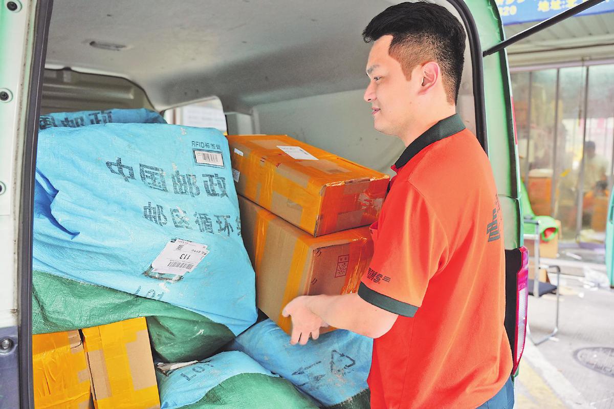 郵政人員攬收新疆路向郵件后,第一時間發(fā)往處理中心,讓郵件搭乘專線盡快抵達新疆。