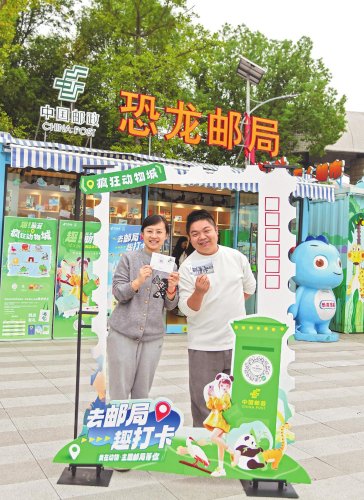 游客在恐龍郵局參與“中國(guó)郵政·文化季”打卡活動(dòng)。