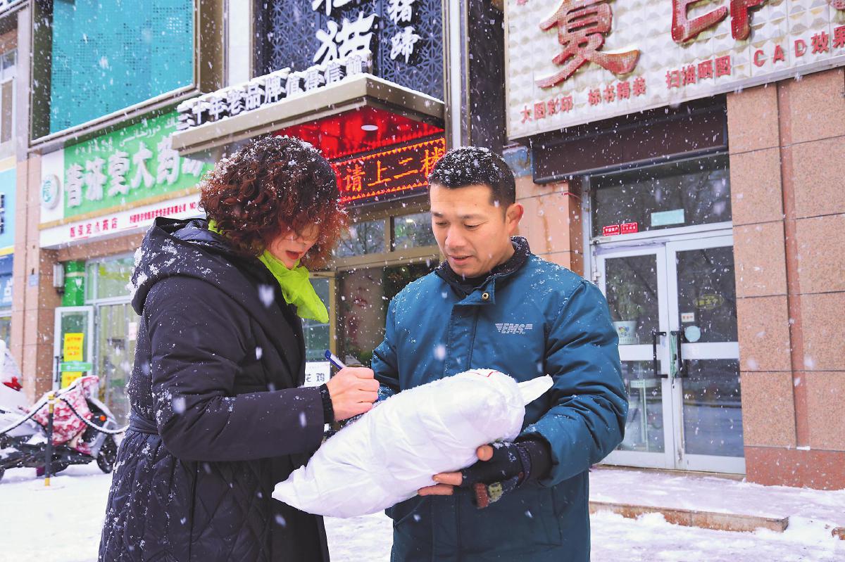近日,新疆維吾爾自治區巴音郭楞蒙古自治州迎來了入冬后的第一場大雪。受暴雪極端天氣影響,氣溫驟降且道路濕滑難行,給快遞運輸、投遞都帶來較大阻礙。為了讓客戶盡早收到快遞,巴州郵政分公司攬投員頂著紛飛的雪花,迎著刺骨的寒風,比平時更早出班投遞。他們送件的手是冰涼的,但是送出的快件溫暖著每一位客戶。“下這么大雪還以為你們會晚點送呢,沒想到這么快就收到了。”客戶張女士對郵政服務稱贊不已。