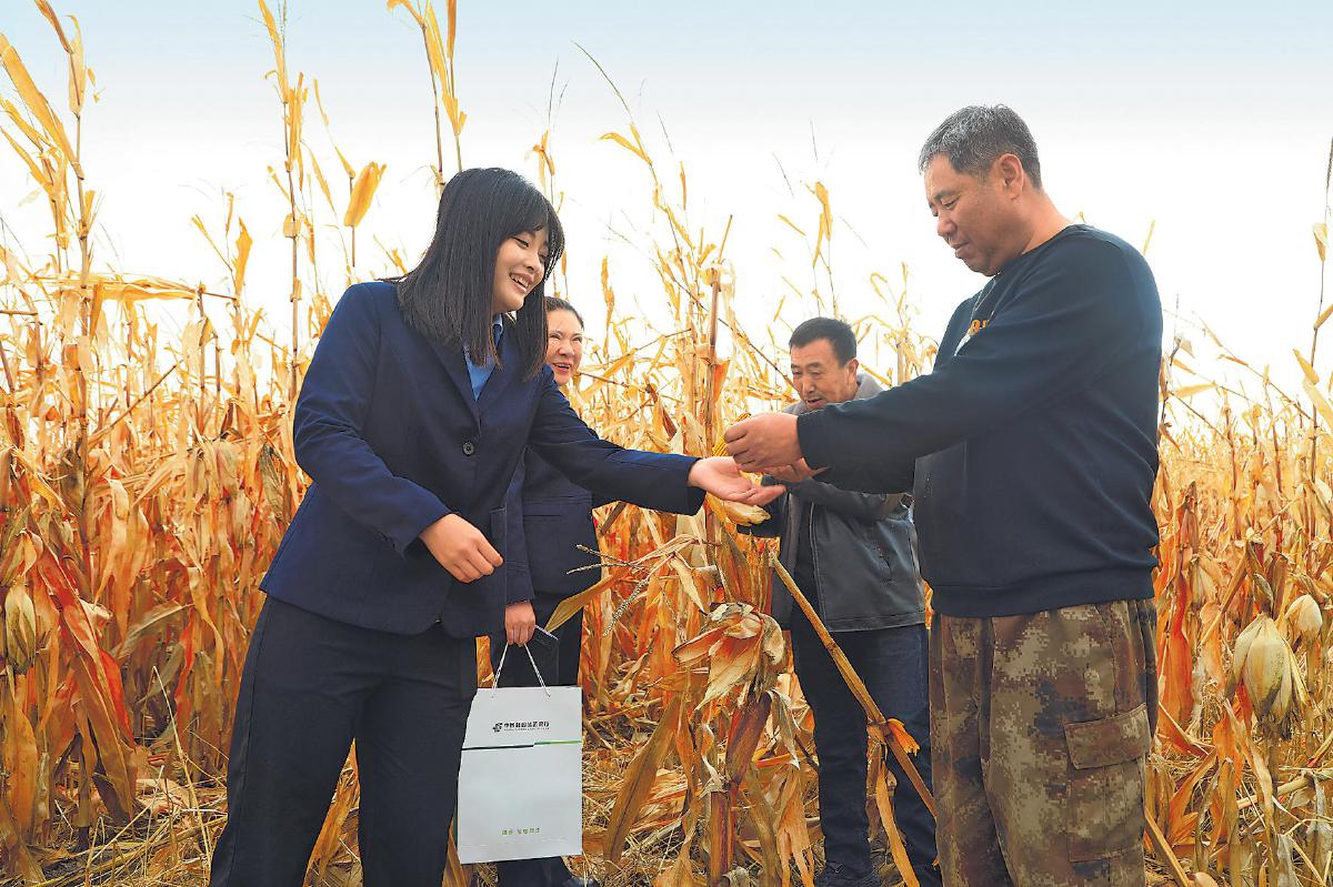 黑龍江省分行金融服務小隊走訪種植大戶,了解秋收情況。