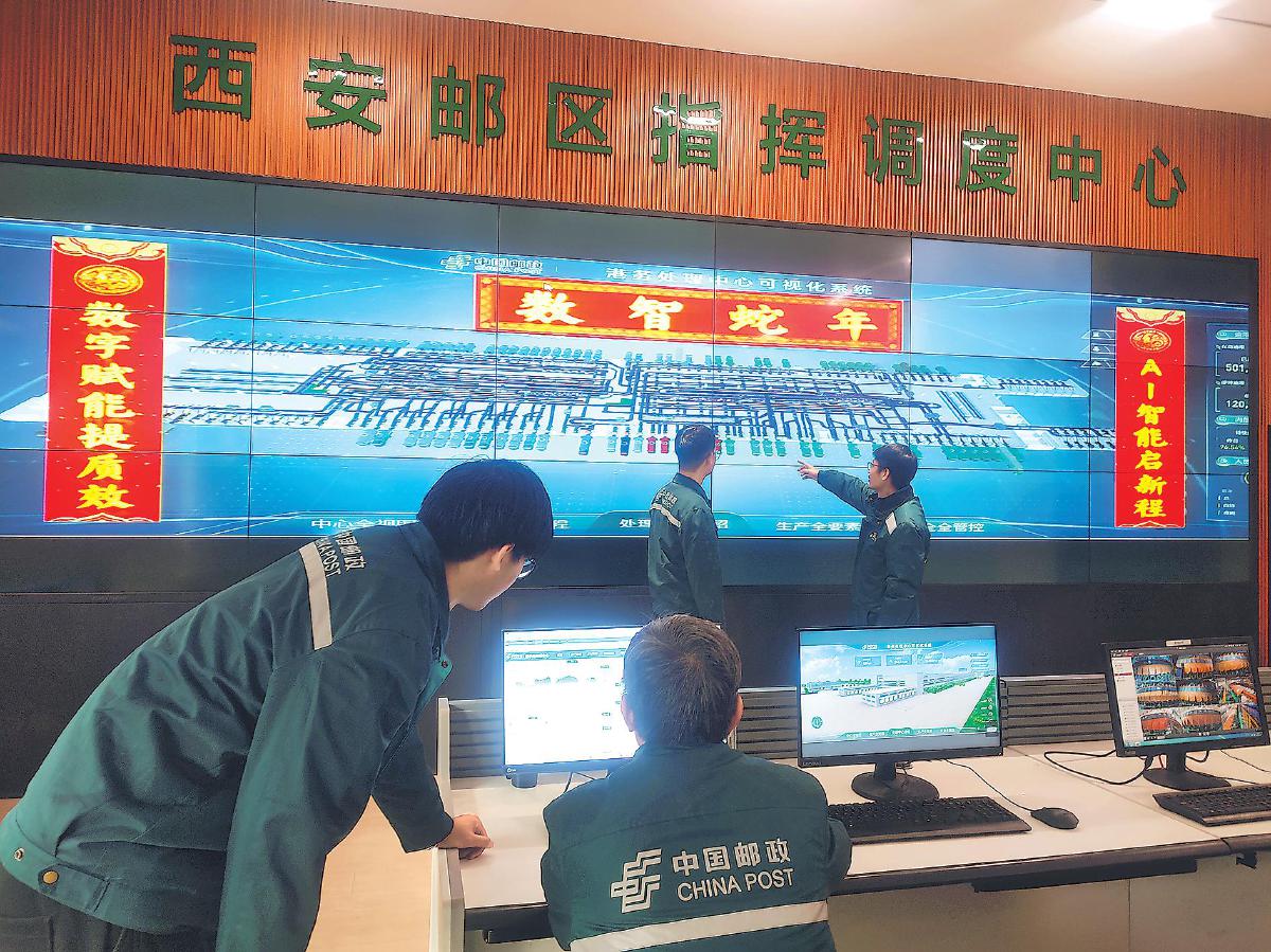 西安郵區(qū)中心使用數(shù)字化系統(tǒng)強(qiáng)化管控能力,確保春節(jié)期間生產(chǎn)順利進(jìn)行。 □王永盛 攝
