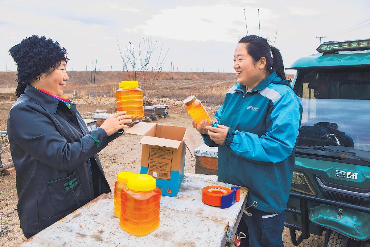王微摸清了常勝鄉(xiāng)蜂農(nóng)的分布情況后,積極利用投遞機(jī)會(huì)與蜂農(nóng)分享微商銷售方法,幫助他們建立線上銷售渠道。她用淳樸的語(yǔ)言向買(mǎi)家推薦當(dāng)?shù)氐膬?yōu)質(zhì)蜂蜜,贏得了一大批回頭客。打開(kāi)網(wǎng)絡(luò)銷售渠道后,王微主動(dòng)到蜂農(nóng)家收取蜂蜜郵件,還為他們提供打包、封裝、貼單的“一條龍”服務(wù)。目前,王微已累計(jì)寄遞蜂蜜郵件達(dá)4700余件。